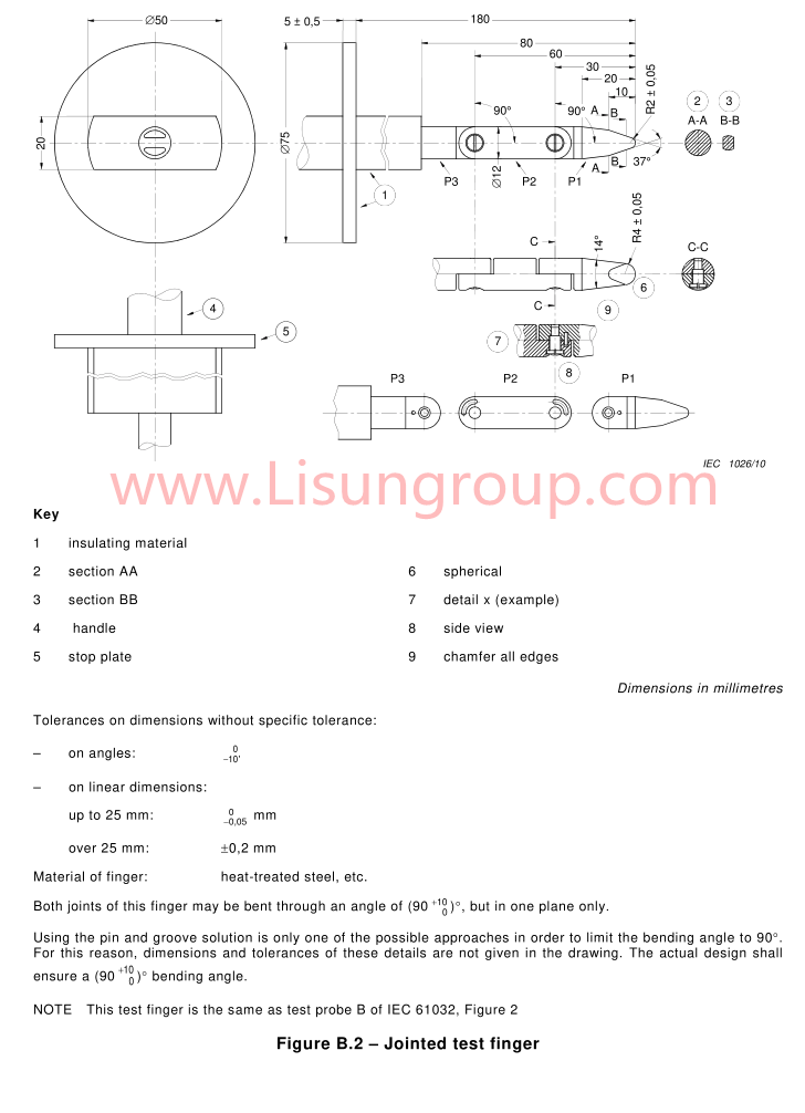 | IEC 61032:2017 | Clause 5.3 Figure 2 (Test Probe B) | Test probes for protection against access to hazardous parts |
