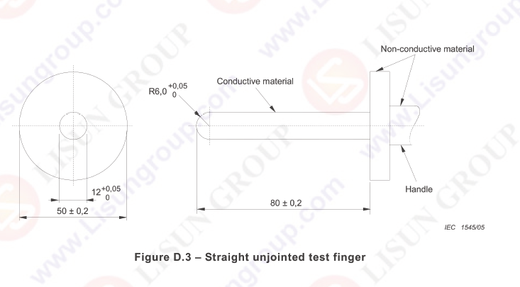 Straight Unjointed Test Finger of IEC 62109-1 Figure D.3