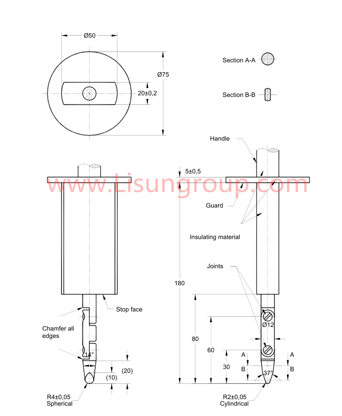 | IEC 61032:2017 | Clause 5.3, Figure 5.3 | Test probes for protection against access to hazardous parts |
