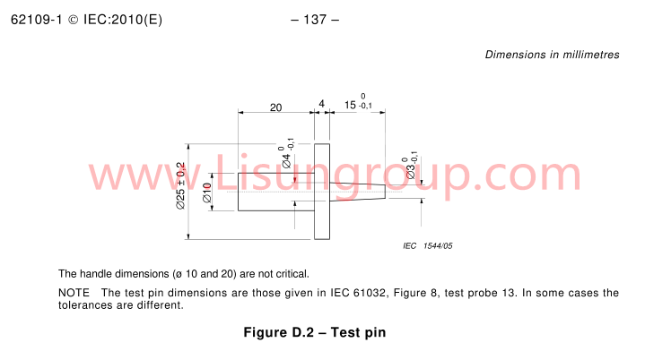 Tool Type: Test Pin of IEC 62109-1 Figure D.2 (for PV power conversion equipment hazardous part testing)